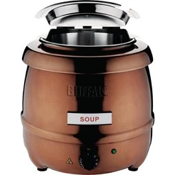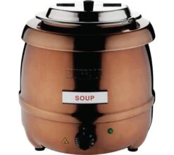 This latest model is made of top quality components and produced to the highest of standards. It has a stainless steel pot and a hinged lid, with and a smart copper finish, making it excellent for serving soup, curry or chilli.
