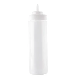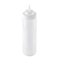 The bestselling Widemouthâ„¢ squeeze bottles are a fantastic addition to your premises. They have a large 53mm opening for easy filling and cleaning. 24oz capacity is an ideal option for fast preparation and service areas. Features standard cone tip tops (2.8mm) opening.
