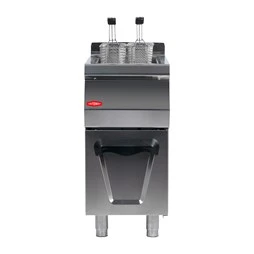 This commercial deep fat fryer has a single 24L tank with 2 stainless steel frying baskets. This is excellent for a busy catering establishment that requires high output. For a little extra storage, there is a cupboard built underneath the fryer. This is perfect for storing utensils and the draining tube accessory that comes included. It also has a magnetic door and large ergonomic handle for ease of use.Â