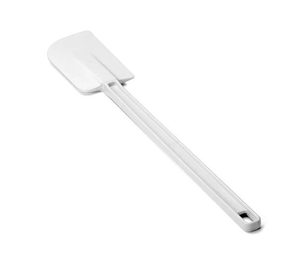 Use this BPA free white spatula for all of your food prep and baking needs! The spoon shaped blade is sturdy enough for mixing and spreading frostings and icings, as well as filling piping bags. The moulded design forms a sanitary seal, preventing bacteria from growing and making cleaning a breeze. Heat resistant to 140°F (60°C) They’re perfect for getting every last drop off of bowls and pans for a no waste experience.