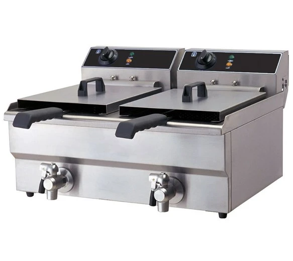 Exceptional value, professional, huge 2 x 12 ltr counter-top commercial catering fryer with drain taps. These units are designed to give outstanding performance day in, day out. Manufactured to the highest of standards, they bring exceptional value for money to the professional catering industry. This is the most up to date model, with thermostat cut out and reset switch. This model also features a robust drain tap, unlike some other models which are very thin and prone to breaking/blocking.