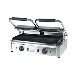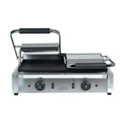 This contact panini grill has twin top and bottom ribbed cast iron plate presses that give that signature grill experience. Therefore, it’s perfect for chicken, paninis, burgers, and more. This product offers a reliable performance that is especially ideal for cafes and outdoor catering.