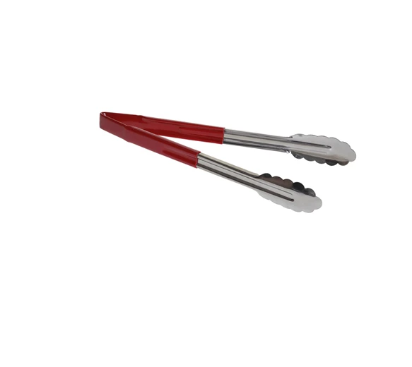 Don’t settle for tacky tongs. You deserve equipment that steps up to the plate and delivers! These unique, heavy-spring steel hinge tongs provide excellent grip and control, especially with the scalloped stainless steel pincers. The colour coded comfort grip vinyl handle also helps to prevent cross contamination. They’re a valuable addition to any kitchen!