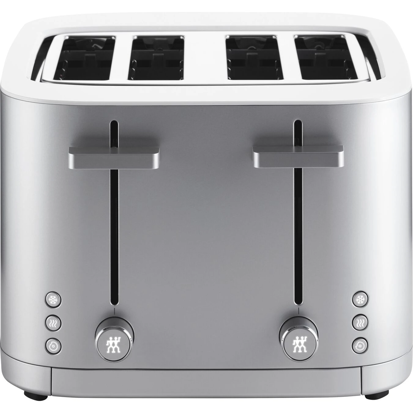 Every slice of toast is a masterpiece. This premium silver toaster for four slices in modern ZWILLING design ensures evenly brown toast. Repeated toasting automatically shortens the toasting duration. The 1800 watt toaster’s eight separate heating elements evenly toast both sides of each slice. Plus, each slice of toast is crispy on the outside and soft on the inside – authentic ZWILLING toast.