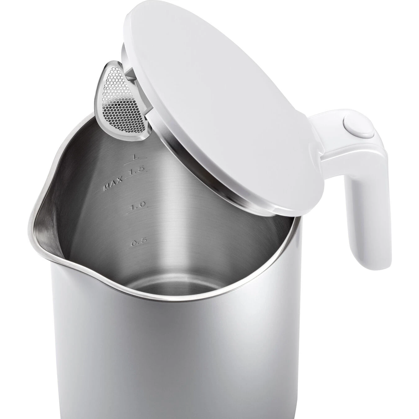 - Stainless steel limescale filter for better flavour and less limescale in tea and coffee